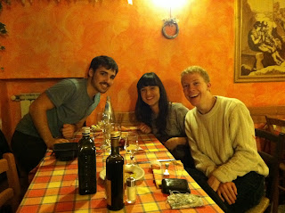 So you might recall the Dutch couple I met yesterday, Joke and Chris. Or Ken and Barbie as I call them. Apparently their friends call them that as well. We had plans to meet up for dinner yesterday, and this is how it went down. I got back to the hostel after seeing them at lunch, and started to decompress by taking care of travel arrangements. With all of the walking around Rome demands, a couch is the highest comfort. With my laptop and my hostel couch, I was in heaven. So I keep interneting and sitting around, and wait until my laptop clock tells me that it is almost 7pm, the time when I need to be at some new restaurant the plastic pair recommended. It doesn’t look too far away, so I am out the door at 20 minutes until 7 with a map and a spring in my step. Then I look at my phone. 10 minutes until 8. What. The. Hell? If there is one thing I hate, it’s being late. If there’s another thing I hate, it’s other people being late. Owing to my ability to empathize with the proverbial couple who has been waiting on me for 40 minutes, I am able to hate both myself from my perspective and theirs. Turns out my laptop is still set on British time. Careless. I jog the last few streets to the restaurant, and look in the window to see the Dutch pair of supermodels almost finished with their meal. I erupt into the tiny locals-only restaurant and apologize so loudly that everyone in the restaurant looks at the crazy blonde guy. I feel their Italian disapproval for interrupting the atmosphere.